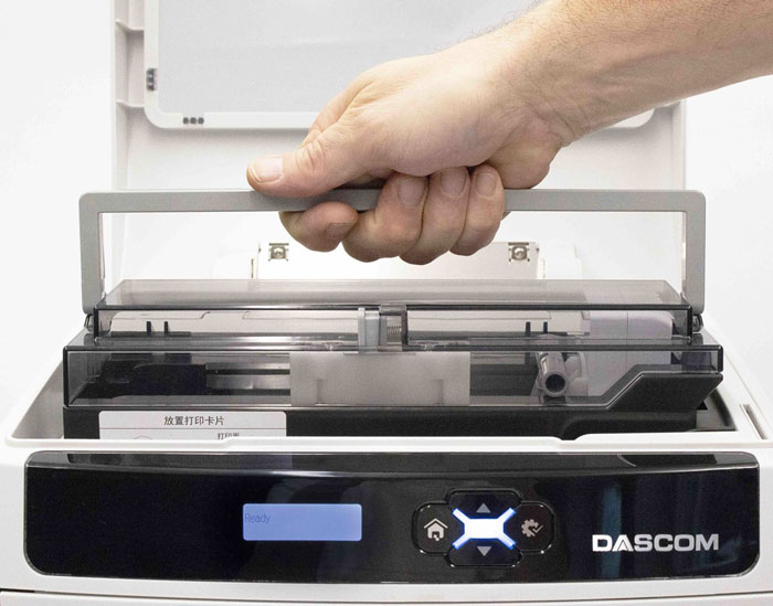 Additional options such as encoders for magnetic stripes or contactless chip cards and a card design software complete the offer. From loyalty cards to employee badges and official identity documents: The DASCOM DC-7600: Comfortable, quick, and reliable to deliver excellent print quality.